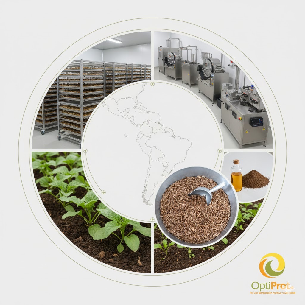 Optiprot es la primera granja de producción masiva de insectos comestibles en Latinoamérica que cría y procesa gusanos de la harina (Tenebrio molitor) para consumo humano, animal y aplicaciones agrícolas.